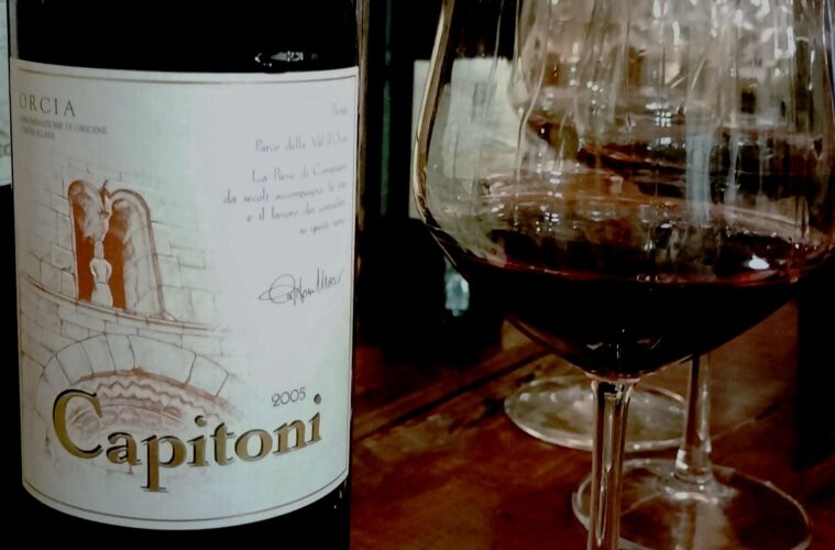 Orcia DOC 2005 Capitoni: un vino che dimostra grandi possibilità d’invecchiamento e che il Merlot di alcune zone toscane “chianteggia”, perdendo certi connotati classici per avvicinarsi al buon Sangiovese.